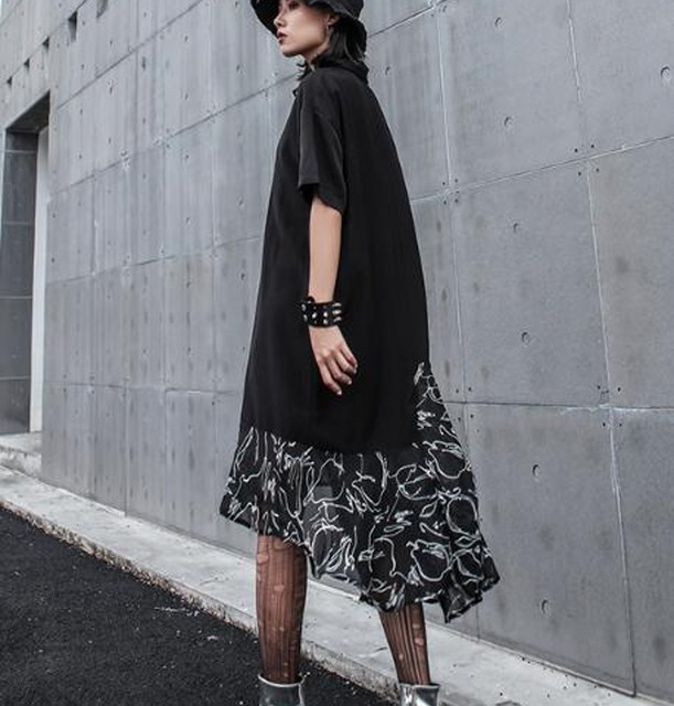 原宿系夏 ファッション 不規則無地シャツワンピース 黒 白